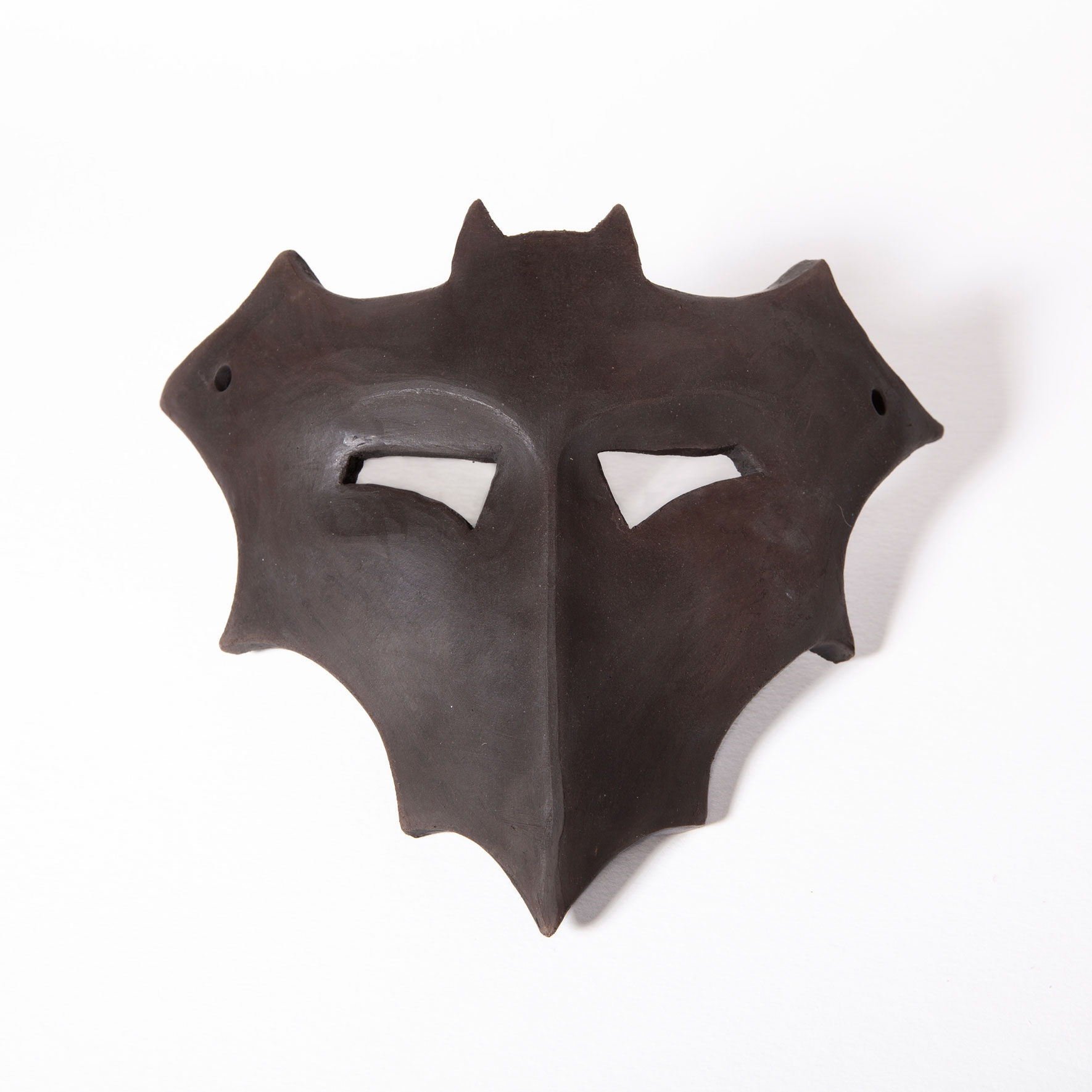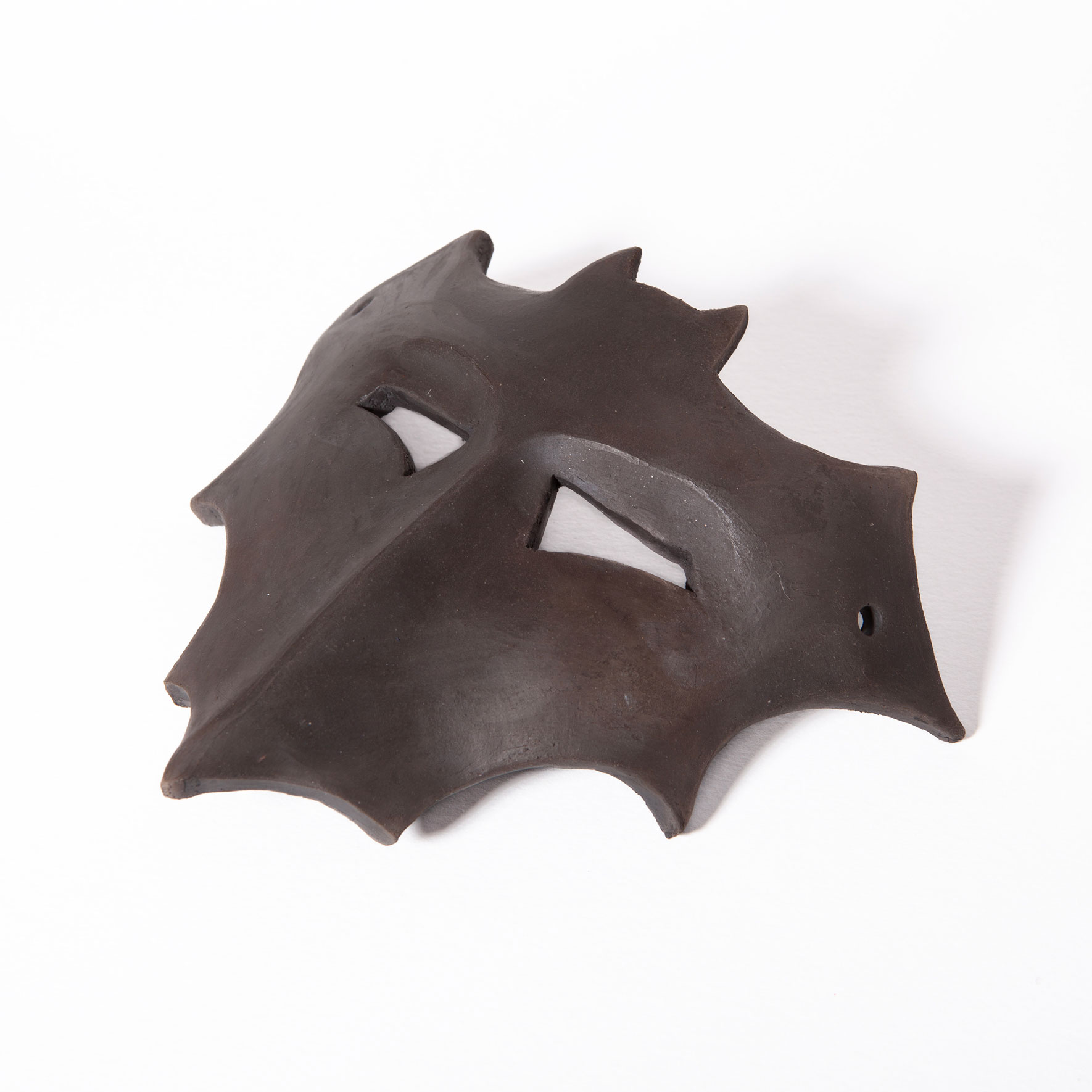 Masque en grés blanc, façonné à la plaque, cuisson raku, sans émaillage.